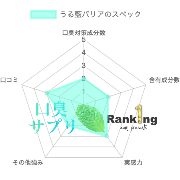 - 4位は、口臭サプリで唯一の「藍」を主成分とした『うる藍バリア』です。顆粒タイプなので、即効性はないものの、「藍」をはじめとした5種類の口臭対策成分で体内からニオイの原因を改善してくれます。