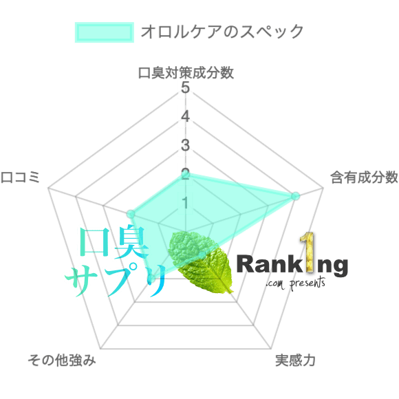 - 『オロルケア』に配合されている口臭対策成分数は6種類と少なめです。