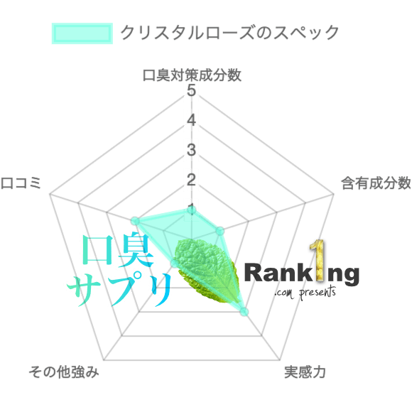 - 『クリスタルローズ』に配合されている口臭対策成分数はローズオイルの1種類だけです。