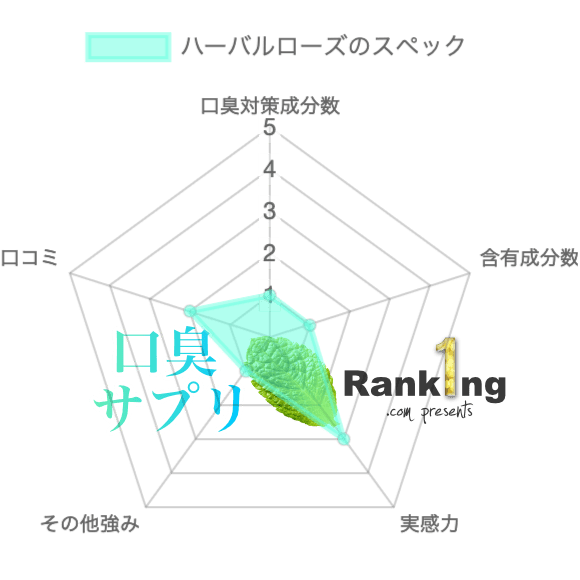- 『ハーバルローズ』に配合されている口臭対策成分数はローズオイルの1種類だけです。